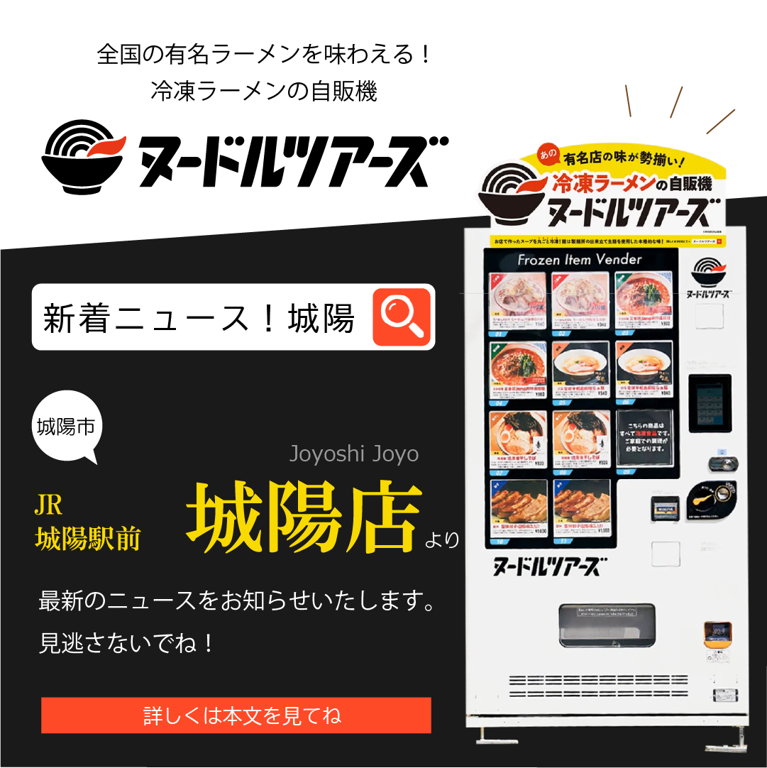 Facebook 広告バナー 概要 冷凍ラーメンの自販機ヌードルツアーズ京都様 URL: 仕様/担当 デザイン 全国の有名ラーメンが買える冷凍自動販売機のヌードルツアーズを京都で展開されている、麺類専門会員制レンタルキッチン「みんなのラーメン厨房」様よりご依頼いただきました。 フェイスブックやインスタグラムでの新店舗オープン時やお知らせなどの際のバナーです。